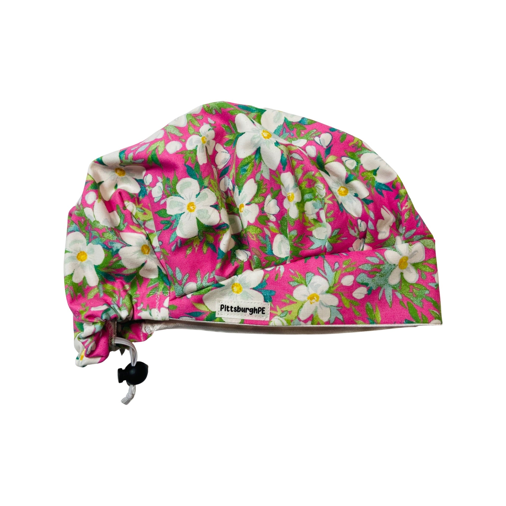 Pink. luau floral scrub cap