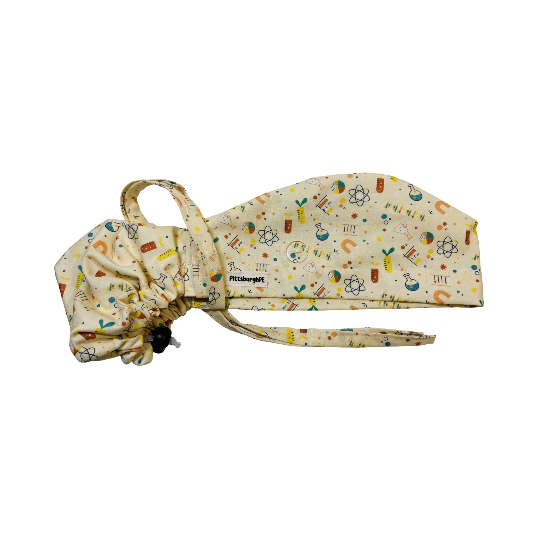 Chemistry. on tan scrub cap